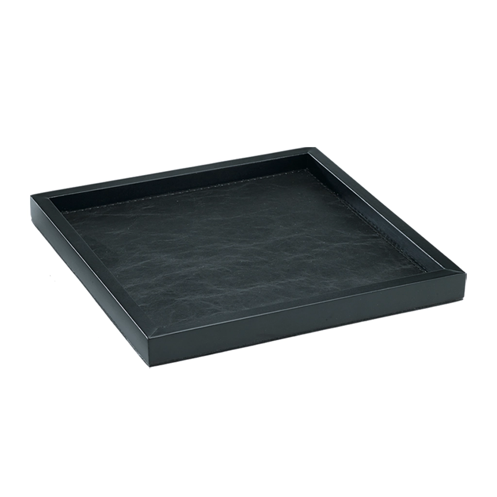 Holztablett mit schwarzem Kunstleder, antirutsch