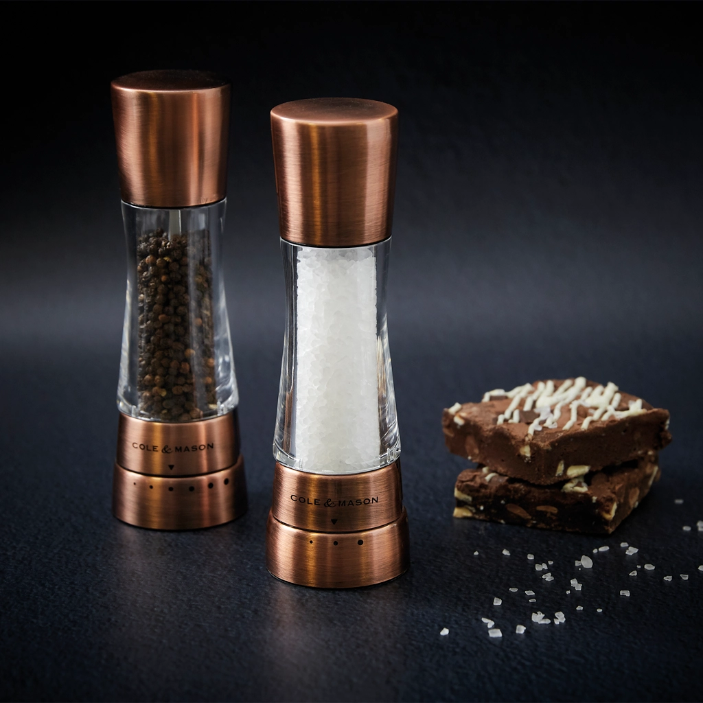 Das elegante Kupferdesign verleiht der Mühle ein stilvolles Aussehen,das in jeder Küche gut zur Geltung kommt. Die hochwertige Verarbeitung sorgt dafür, dass die Mühle langlebig ist und eine gleichmässige Mahlung des Pfeffers gewährleistet.