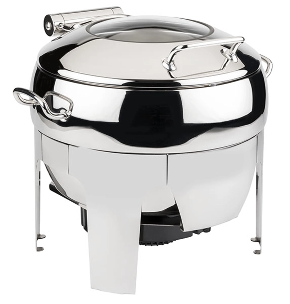 1 Gestell + 1 Wasserbecken mit Sandwichboden + 1 Deckel mit hydraulischem Gelenk + 1 runder Speisenbehälter, hitzebeständige Griffe, hochwertige Verarbeitung,ausschliesslich für Induktionskochfelder geeignet"
