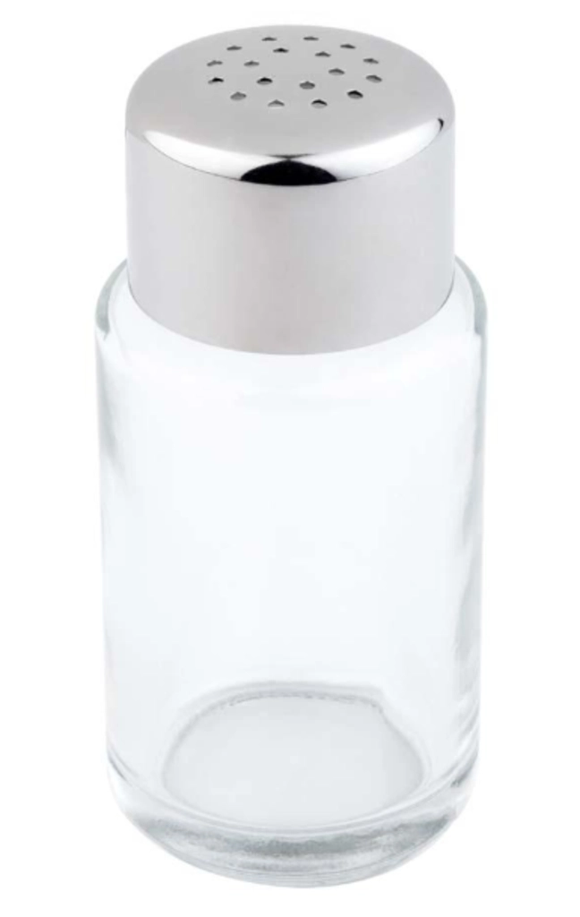 Salzstreuer Glas, Deckel CNS matt, 18 Löcher, Ø 4 cm, H: 9 cm